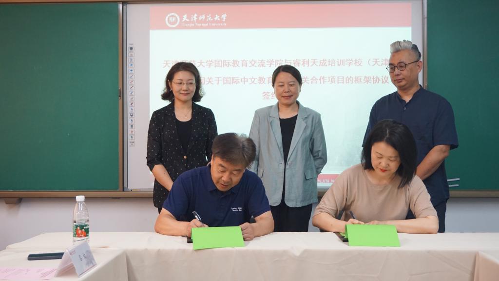 为满足海内外对国际中文教育人才的多元需求,促进人才高质量就业和可持续发展。6月20日,公司与睿利天成培训学校(天津)有限公司合作签约仪式在综合楼306室顺利举行。睿利天成培训学校(天津)有限公司董事长杨飞、董事长孙一丹、REALLY语言学院经理杨婉霞以及suncitygroup太阳新城经理赵雅文、副经理高航参加仪式。签约仪式由副书记吕由主持。