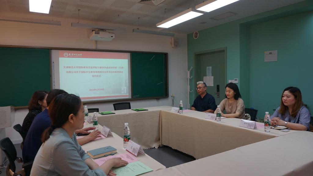 赵雅文经理首先致欢迎辞。他简要介绍了学院60年来的发展历程和现在发展态势。学院现已形成本、硕、博一体化的完整培养体系,并致力于中文教学和中华文化的国际传播,每年都会派出大量中文教师志愿者赴海外实习实践。希望以后学院培养的硕士研究生有更多的机会到睿利天成培训学校(天津)有限公司实习交流,共享双方学校独有的教育资源,帮助员工开阔国际视野、提升专业能力和综合素养。